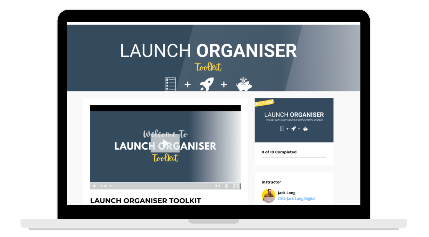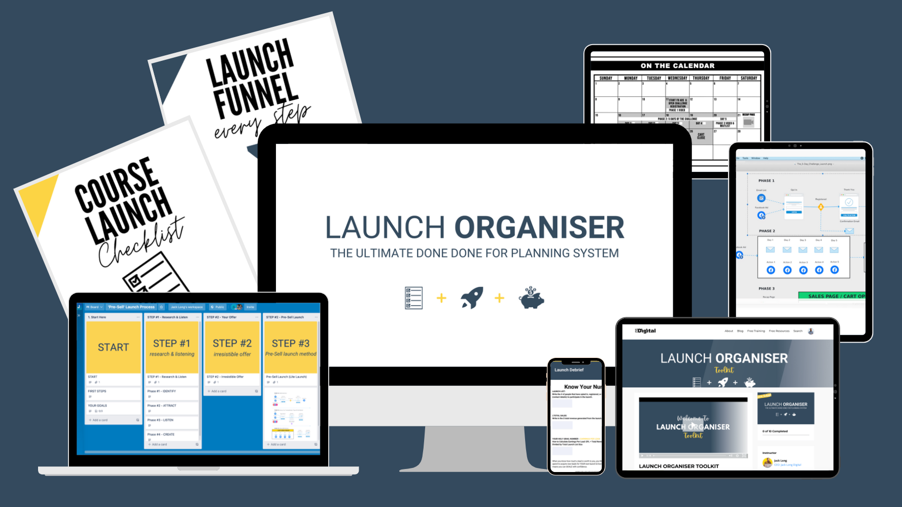 The Launch Organise Toolkit is your one stop shop that helps you create, plan, automate & execute a profitable ONLINE DIGITAL COURSE LAUNCH with ease...