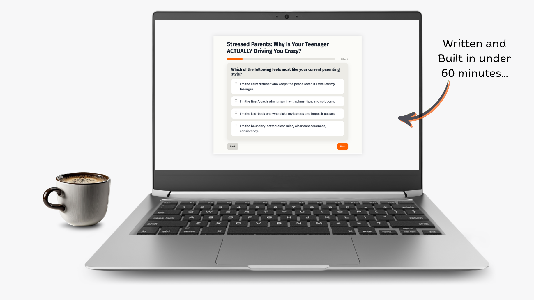 Answer a few simple questions about your niche, your audience, and your offer. That's it. Quick Quiz takes it from there.